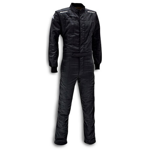 Product Description Suit - The Racer - Driving - 1 Piece - SFI 3.2A/5 - Double Layer - Nomex - Black - Medium - Each