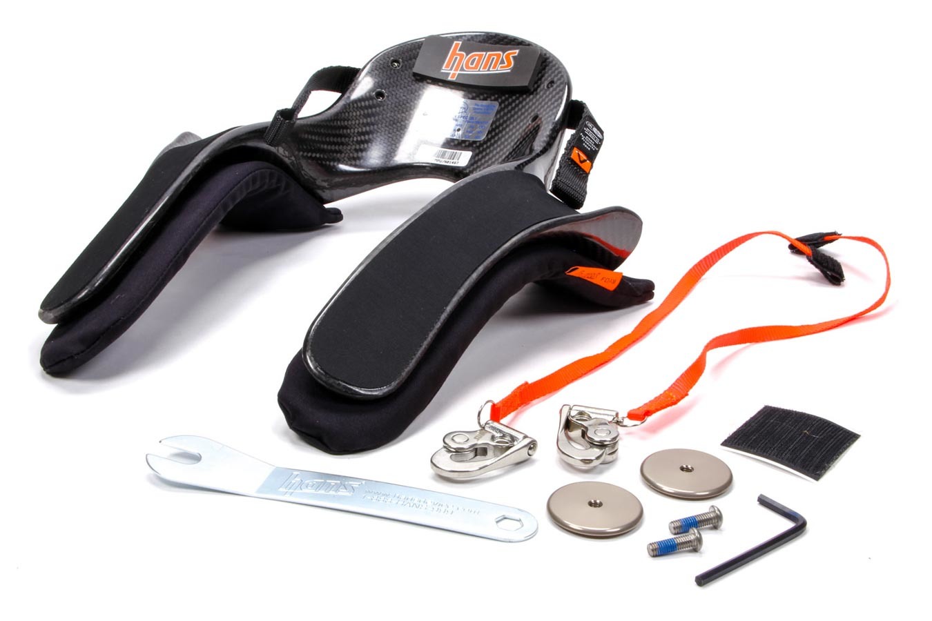 Product Description Head and Neck Support - Ultra Pro Model 20 - SFI 38.1 - Sliding Quick Click Tether - Helmet Anchor - Carbon Fiber - Medium - Kit
